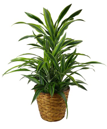 The attractive Dracaena Warneckii plant feature long leaves, striped in light and dark greens. It can survive in low light and prefers dryer soil, which makes it suitable for home or office. The more light it receives, the faster it will grow.