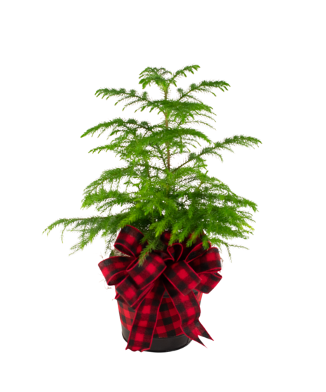 Our Buffalo Plaid Holiday Planter is the perfect way to bring cozy, rustic charm to your seasonal decor. This festive arrangement features a lush Norfolk Island Pine beautifully planted in a classic buffalo plaid container and finished with a matching buffalo plaid bow. It's a charming and timeless accent for any home.
