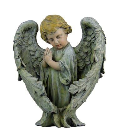This boy angel folds his hands in prayer as his large wings enfold him. Perfect as a garden gift, or to add to a planter basket.