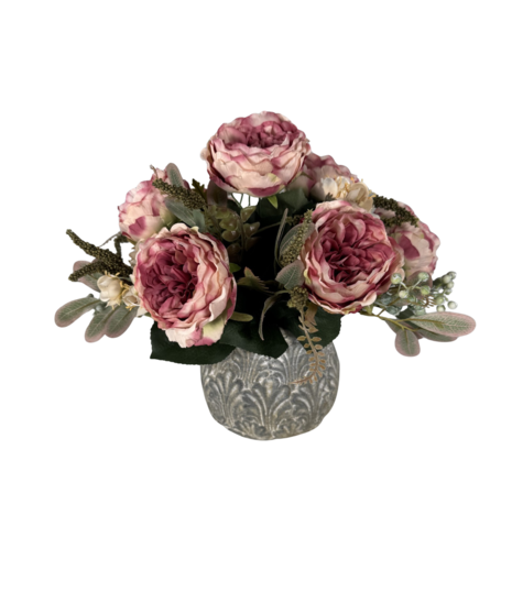 Soft and romantic, this pink peony silk arrangement brings effortless beauty to any space. Lush faux peonies are artfully paired with fresh-looking greenery and designed in a neutral stone container for a clean, modern finish. With its realistic blooms and lasting charm, this arrangement offers all the beauty of fresh flowers—no maintenance required. Perfect for home décor, offices, or as a thoughtful gift that lasts season after season.